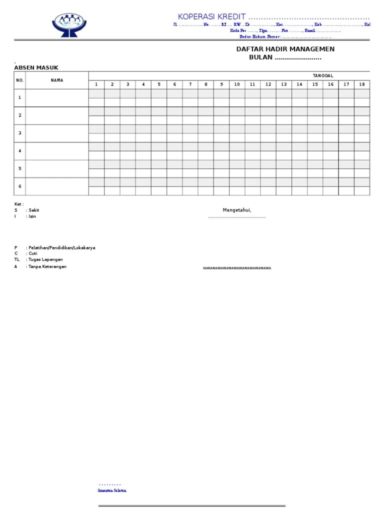 Aplikasi absensi karyawan talenta by mekari menggunakan sistem berbasis cloud dan dapat diakses melalui web maupun mobile. Contoh format daftar hadir karyawan berdasarkan hari sehingga data karyawan nya sangat banyak sekali. Pekerjaan mencatat waktu pada dasarnya dapat dipisahkan menjadi 2(dua) bagian yakni pencatatan waktu hadir (attendance time keeping) dan juga pencatatan waktu kerja (shop time keeping). Contoh format lembar absensi karyawan harian manual tips kerja. Bebaskan karyawan menandai kehadiran dari mana pun dengan pelacakan ip dan geo. Format excel ini biasa saya gunakan saat bekerja dulu terimakasih telah menonton jangan lupa. Semoga dengan tutorial ini kawan semua dapat terbantu daftar hadir (lampiran) logo perusahaan form hal 4 of 6 no dok. daftar hadir dengan cepat di, membuat daftar hadir otomatis dengan microsoft excel, atenda aplikasi absensi online jadwal kerja dan gaji, hrd wajib baca format absensi karyawan masa kini, download absensi siswa excel rekap otomatis belajar office, sistem informasi aplikasi penggajian karyawan berbasis web, xls format absensi karyawan bagus santoso Sahabat seputar it, pada artikel kali ini saya akan berbagi trik bagaimana cara membuat absensi daftar hadir dengan cepat di microsoft excel, cara membuat daftar hadir di microsoft excel ini sering saya gunakan ketika hendak membuat absesi untuk rapat ataupun kegiatan. Coba zoho peole secara gratis! Cara praktis membuat absensi otomatis di microsoft excel. daftar hadir manual nama :